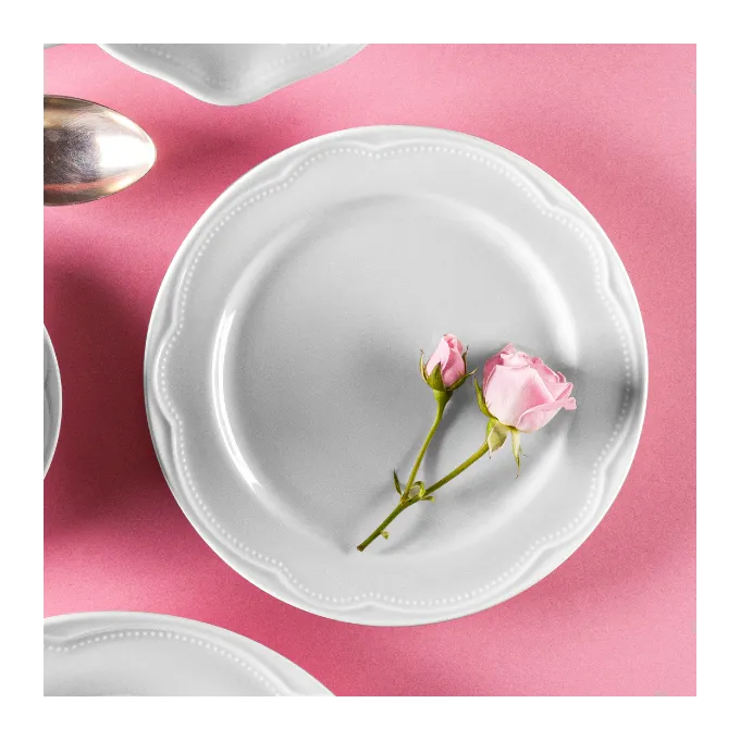 Sirva todo tipo de refeição para seus convidados com muita sofisticação com uma porcelana branca de alta qualidade e detalhes nos pratos que encantam e são de fácil limpeza.